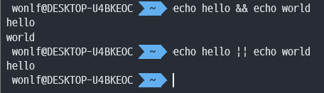 한 줄에 여러 명령어를 사용하고 싶을때 사용한다. ||과 &&로 사용할 수 있고