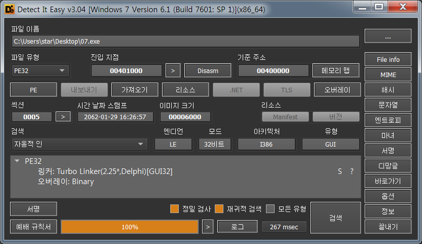 Die로 열어보니 딱히 패킹이 되어있지는 않은듯 하다. 바로 디버깅을 해본다.
