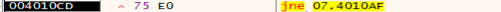 JNE는 같지 않을때 점프를 하는 경우도 있지만, ZeroFlag가 0일 때 점프하는 경우가 있다. 이번에는 후자의 경우이다.
