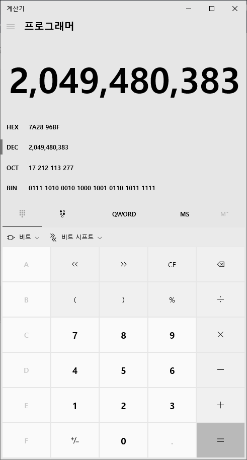 그럼 비교하는 구문의 뒤 인자인 "0x7A2896BF"를 10진수로 바꿔보니