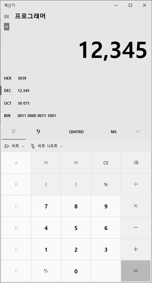 계산기로 확인해보니 내가 입력한 12345가 맞다.