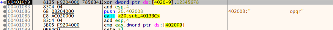 4020F9에 담긴 값과 0x12345678을 xor을 한다.