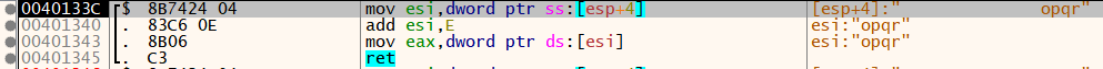 실제로 뒷 4자리인 "opqr"의 16진수인 6F707172가 리틀 엔디언으로 인해 역순으로 저장되어 비교되고 있다. 비교하는 값인 123457B8이 저장했던 18자리의 문자열 중 뒷 4자리여야 아래 구문으로 갈 수 있을 것이다.