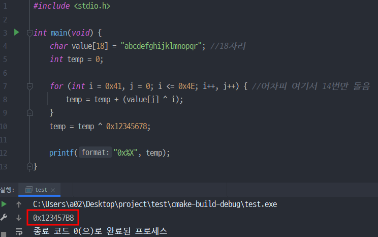 코드로 직접 확인해보았다. 18자리중 앞 14자리가 "abcdefghijklmn" 이라면 뒤 4자리는 0x12, 0x34, 0x56, 0xB8이 되어야 한다. KEY를 수정해보자.