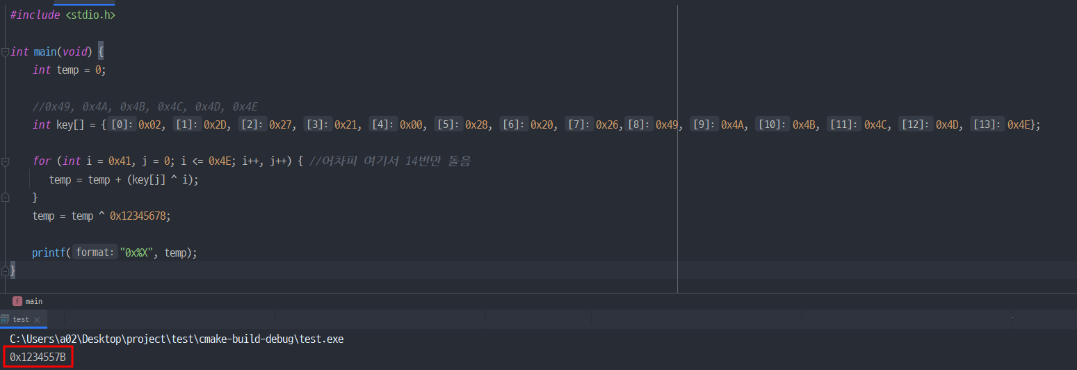 즉, KEY[0] ~ KEY[13](14자리)를 0x41~0x4E에 대응하여 xor하고 전부 더한 값이 4020F9에 담긴다.